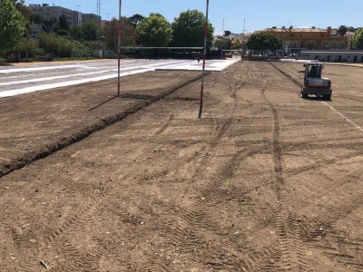 Construcción de terreno de juego en la Ciudad Deportiva Luis del Real Betis en Sevilla.