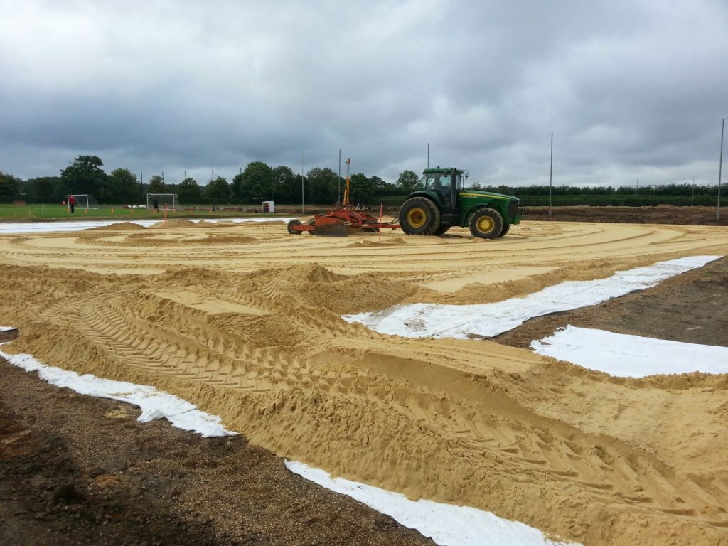 Aporte y nivelación de capa para enraizamiento (root zone) en los campos de entrenamiento de Bell Lane.