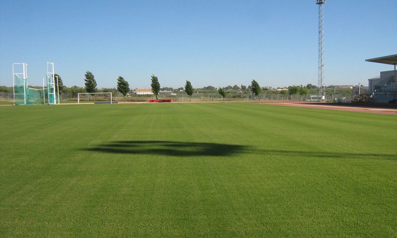 Aspecto final de la pista de atletismo del Polideportivo Municipal de Umbrete, una vez finalizadas las obras de recuperación de la misma tras su abandono